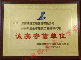 2016年度河南省先進工程監(jiān)理企業(yè)