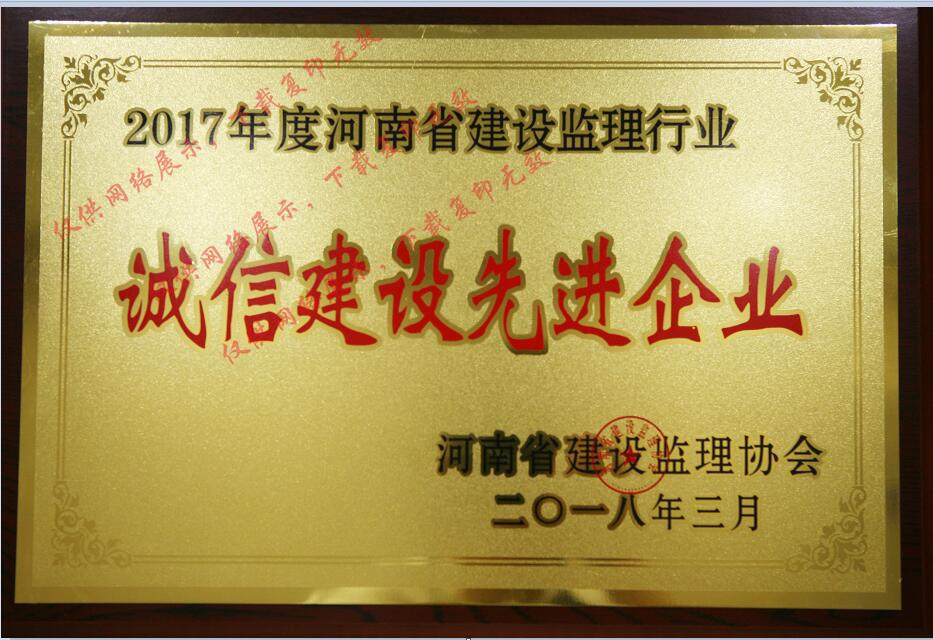 2017年度河南省建設(shè)監(jiān)理行業(yè)誠(chéng)信建設(shè)先進(jìn)企業(yè)