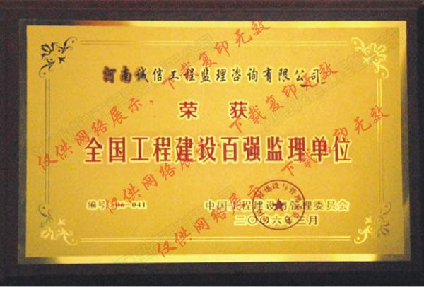 榮獲“全國工程建設(shè)百強(qiáng)監(jiān)理單位”