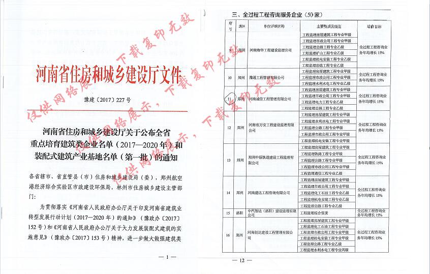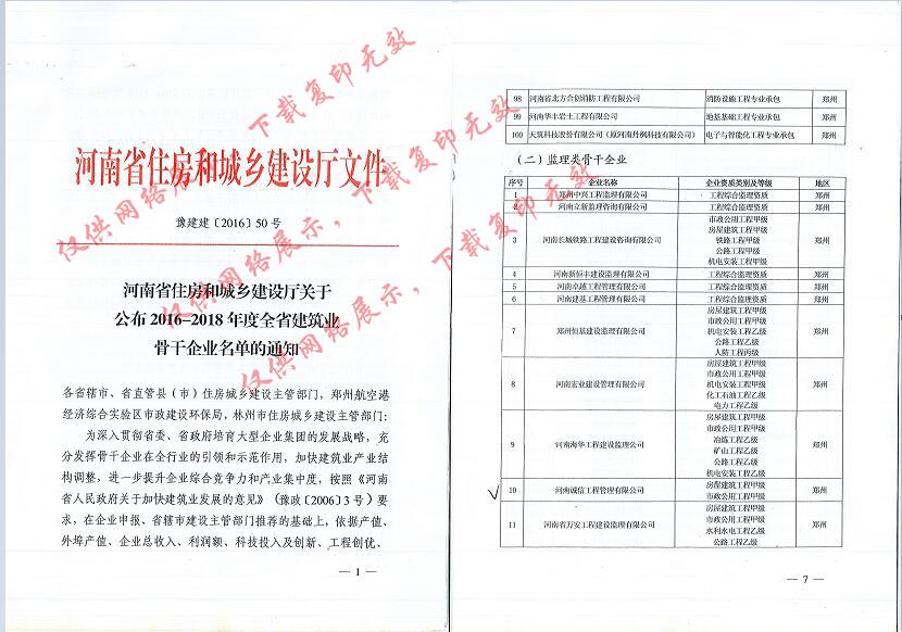 2016-2018年度監(jiān)理類骨干企業(yè)